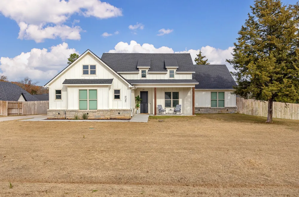 ***Motivated Seller is offering $15,000 in concessions at closing!*** Welcome to this beautifully maintained, like-new home featuring an inviting front porch and a wide entryway that opens to a warm, open-concept living space anchored by a cozy stone fireplace. Thoughtfully designed with high-end finishes throughout, the home showcases crown molding, shiplap accents, designer lighting, and tasteful pops of color that elevate its modern appeal. The kitchen is both stylish and functional, offering a gas cooktop, quartz countertops, walk-in pantry and a large island with seating—ideal for everyday living and entertaining. The primary suite serves as a private retreat with a spa-like en suite featuring a soaking tub, dual vanities and a walk-in shower with designer tile selections. Storage is abundant, with built-ins in the living room and laundry room, a linen closet, and walk-in closets in the guest bedrooms. Additional highlights include an epoxy-coated garage floor, an oversized driveway, privacy fenced backyard and a half-acre corner lot partially shaded by mature trees. Located in a sought-after neighborhood within Lindale ISD, this home offers a Tyler address with convenient access just north of I-20—approximately 1.5 hours to Dallas, less than 10 minutes to Lindale High School, and about 20 minutes to Tyler. A true move-in-ready property that combines quality, comfort, and location.